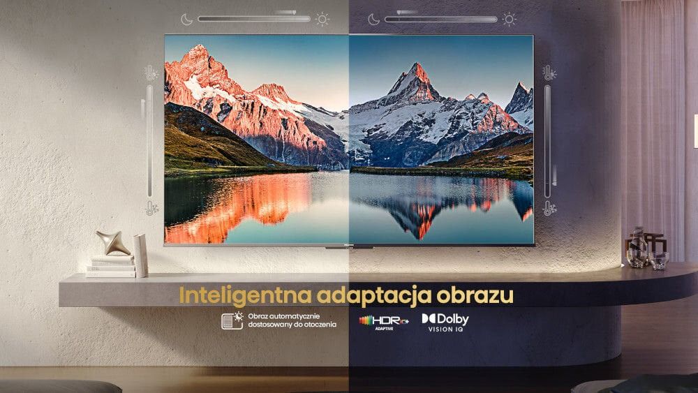 Технология Hisense Total Ambient Adaptive использует датчики света и цвета, встроенные в телевизор. Благодаря этому он способен регулировать яркость экрана и цветовую температуру в зависимости от окружающего освещения. Наслаждайтесь четким изображением в солнечный день и ночью во время вечернего просмотра. Телевизор интеллектуально настроит параметры для достижения наилучшего качества изображения.