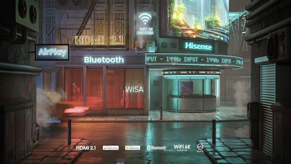 Hisense U8KQ предлагает широкий спектр возможностей подключения к другим устройствам, как проводным, так и беспроводным. Благодаря HDMI 2.1 вы можете подключать внешние источники, такие как новейшая консоль, с полными функциями передачи данных. Однако благодаря Bluetooth, Apple AirPlay или функции Share to TV вы можете подключить свой смартфон или ноутбук по беспроводной сети. Более того, весь комплект колонок домашнего кинотеатра можно подключить без спутывания кабелей благодаря функции WISA Ready.