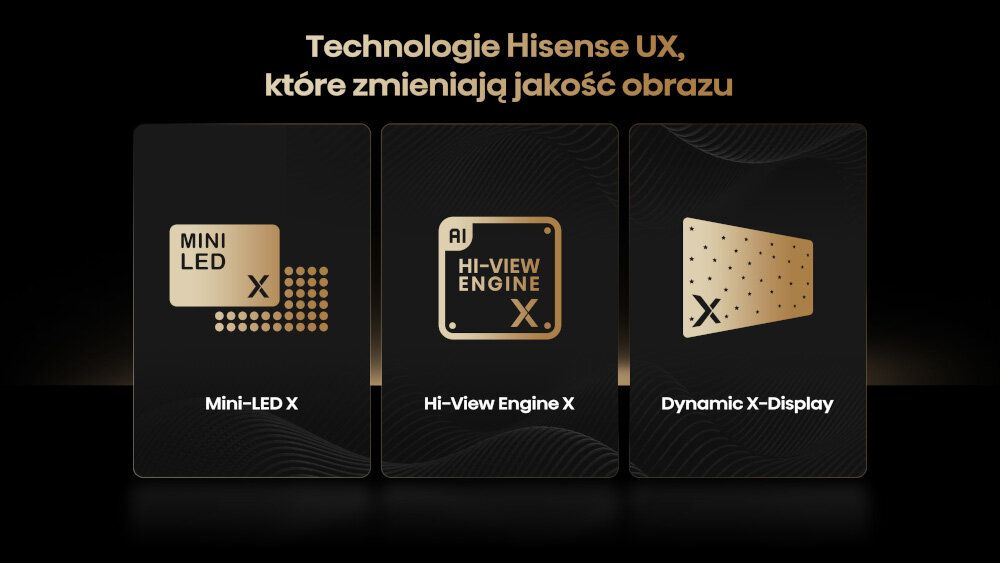 <р>1. Усовершенствованная подсветка: Mini-LED X<р>2. Интеллектуальный процессор изображений Hi-View Engine X<р>3. Современный дисплей с технологией Dynamic X-Display