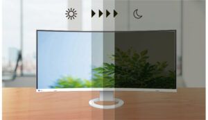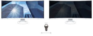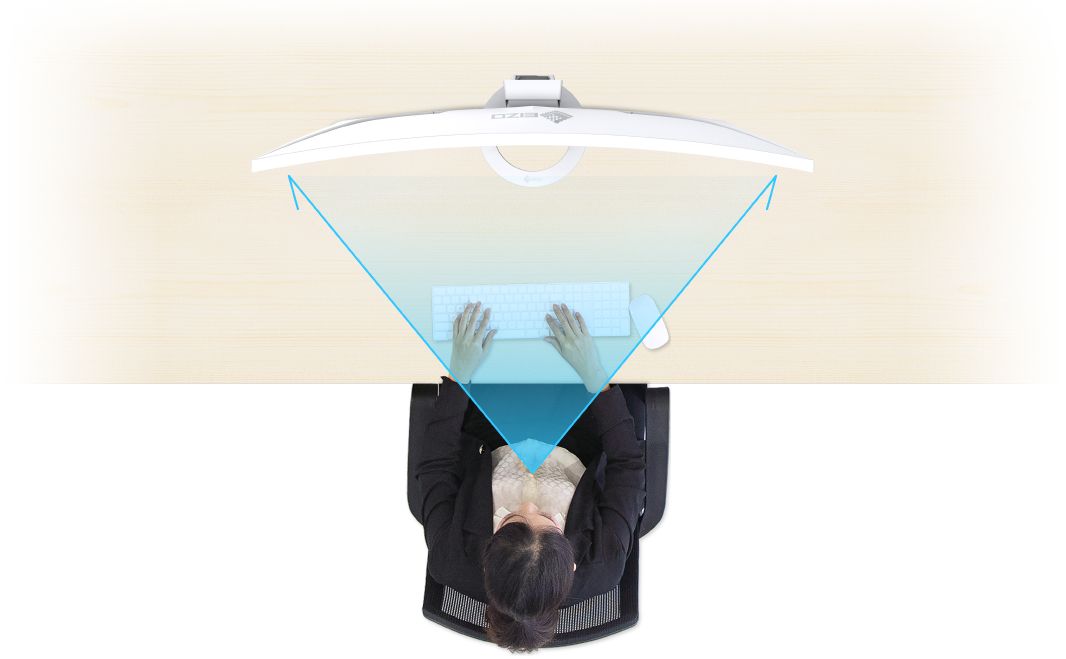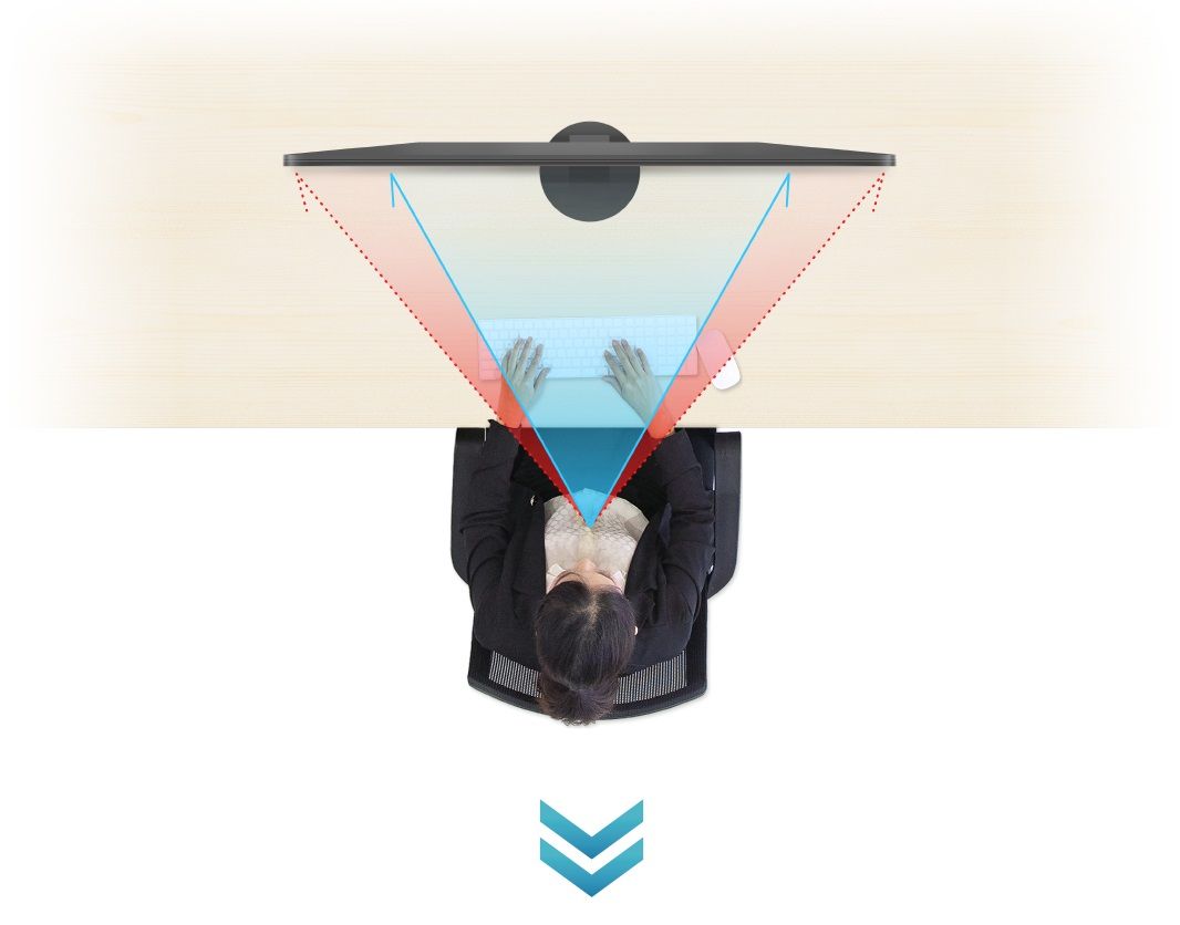 Чем ближе пользователь сидит к большому монитору, тем больше расстояние между его глазами и боковыми краями экрана. Небольшая кривизна панели означает, что вся ее поверхность находится практически на одинаковом расстоянии от глаз. Такое решение облегчает фокусировку и улучшает видимость изображения.
