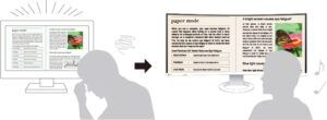 Синий свет, который попадает в спектр видимого света, имеет длину волны, аналогичную ультрафиолету. По сравнению с заводской настройкой типичных ЖК-мониторов на 6500K, режим бумаги ближе к длине волны красного света, что уменьшает количество синего света и, таким образом, предотвращает утомление глаз при чтении документов. Одновременно используя функцию Auto EcoView, вы можете сократить выбросы синего света до 80 %.