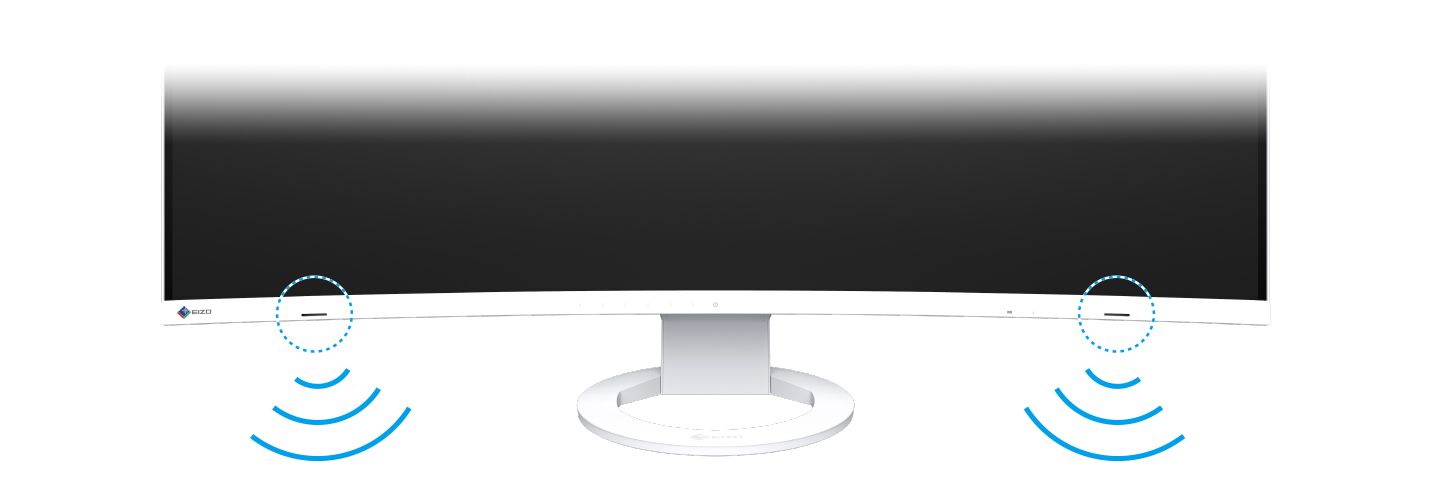 В модели EV3895 динамики встроены в переднюю часть корпуса, поэтому звуки, исходящие от них, доходят прямо до пользователя, а не до людей, стоящих или сидящих за монитором.