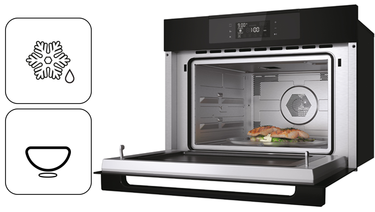Духовой шкаф оснащен функцией, сочетающей в себе свойства микроволн и гриля. Такое решение позволит быстрее запечь небольшие порции мяса или других блюд. Через некоторое время ваше блюдо прекрасно прогреется и покроется хрустящей корочкой.