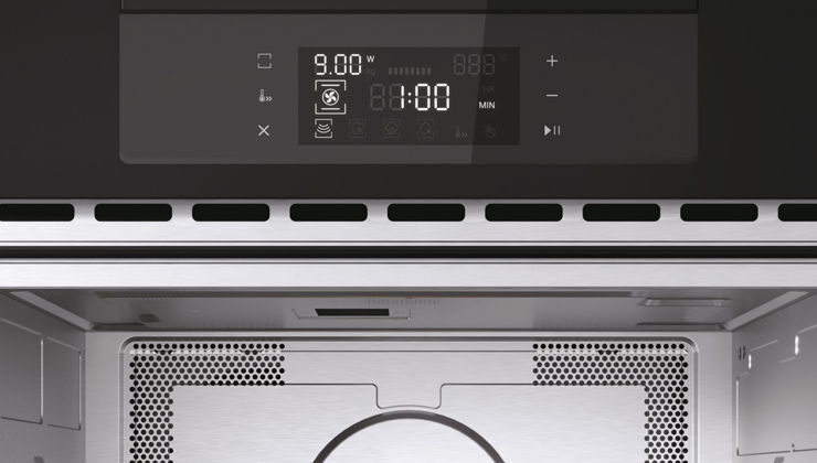 Полностью сенсорный цифровой дисплей обеспечивает удобную и интуитивно понятную навигацию и управление режимами работы устройства. Он обеспечивает полный контроль и легкий доступ ко всем функциям микроволновой печи, включая комбинированные программы и даже автоматическую настройку выбранных рецептов.