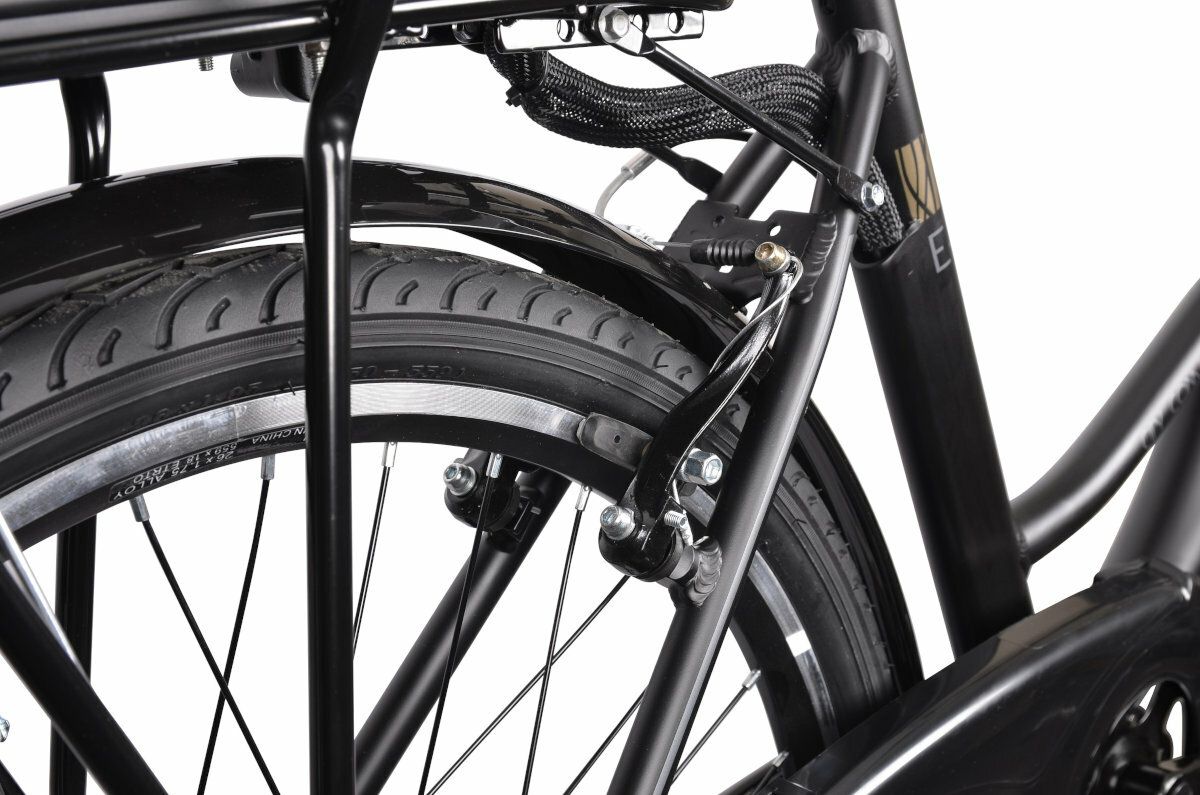 Безопасное торможение Несомненно, основой безопасной езды на любом велосипеде являются эффективные тормоза. В электровелосипеде ESPERIA Bretagne D18 используются проверенные V-образные тормоза Sovereign. Тормоза этого типа отличаются легкостью и простой конструкцией, которую при необходимости можно быстро отремонтировать в дороге.