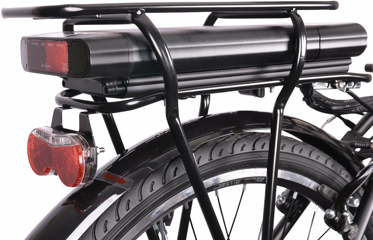 Преимущества технологии Электровелосипед ESPERIA Bretagne D18 проезжает до 70 км на одном заряде аккумулятора благодаря литий-ионному аккумулятору емкостью 10,4 Ач. Срок службы – до 300 зарядов. Автомобиль приводится в движение двигателем мощностью 250 Вт, расположенным в заднем колесе. ЖК-дисплей позволяет контролировать такие параметры, как состояние батареи и скорость.