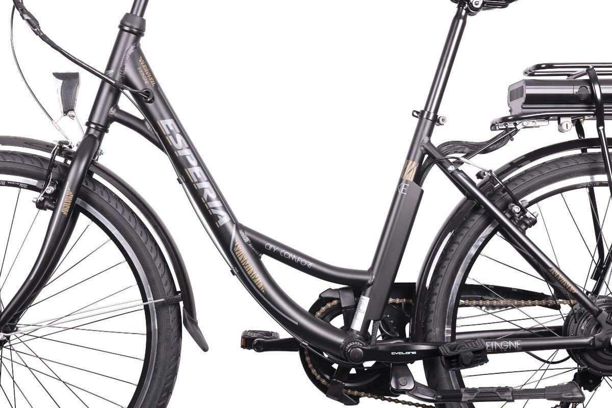 Алюминиевая рама В основе электровелосипеда ESPERIA Bretagne D18 лежит 17-дюймовая алюминиевая рама. Рамы из этого материала устойчивы к коррозии и, главное, очень легкие. Помните, что чтобы чувствовать себя комфортно на велосипеде, в первую очередь следует начать с регулировки. длина рамы. Благодаря этому велосипедом будет намного легче управлять!