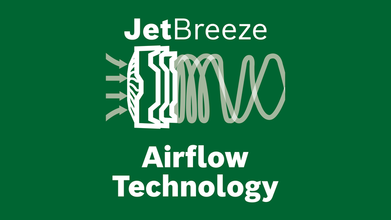 Вентилятор обеспечивает высокий поток воздуха и оптимальную эффективность благодаря усовершенствованной конструкции 5-лопастного пропеллера и технологии воздушного потока Bosch JetBreeze.