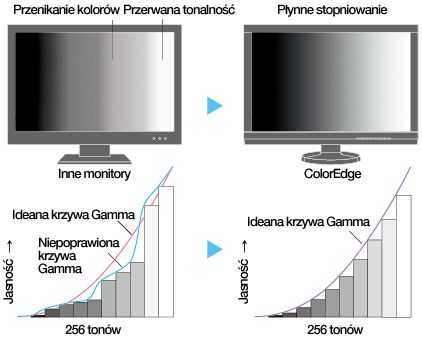 Регулировка гаммы для каждого монитора Гамма-кривая настраивается для каждого монитора ColorEdge индивидуально на заводе EIZO в Японии. Это делается путем измерения значений гаммы для каждого из основных цветов RGB (красный, зеленый, синий) по шкале от 0 до 255, а затем с использованием 24-битной справочной таблицы (LUT) монитора для выбора самые подходящие оттенки.