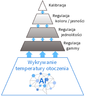 На цвета и яркость ЖК-монитора могут влиять колебания температуры окружающей среды и температуры самого устройства. Модели серии ColorEdge оснащены встроенным датчиком, который распознает изменения температуры и регулирует градации тонов, цвета, яркость и другие настройки монитора, чтобы изображение всегда отображалось правильно. Алгоритм искусственного интеллекта (AI)* CG319X позволяет ему определять температуру и регулировать настройки даже при высоких уровнях яркости.