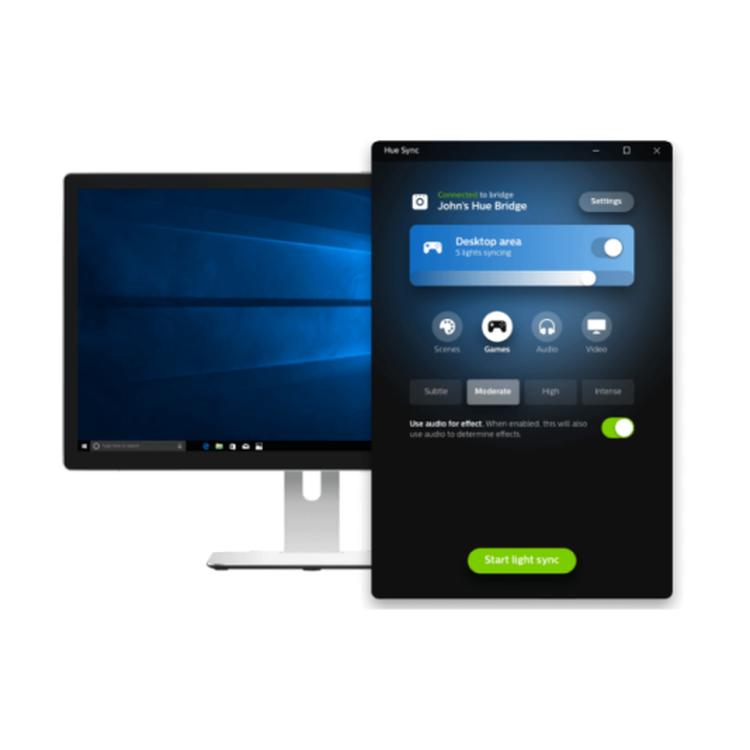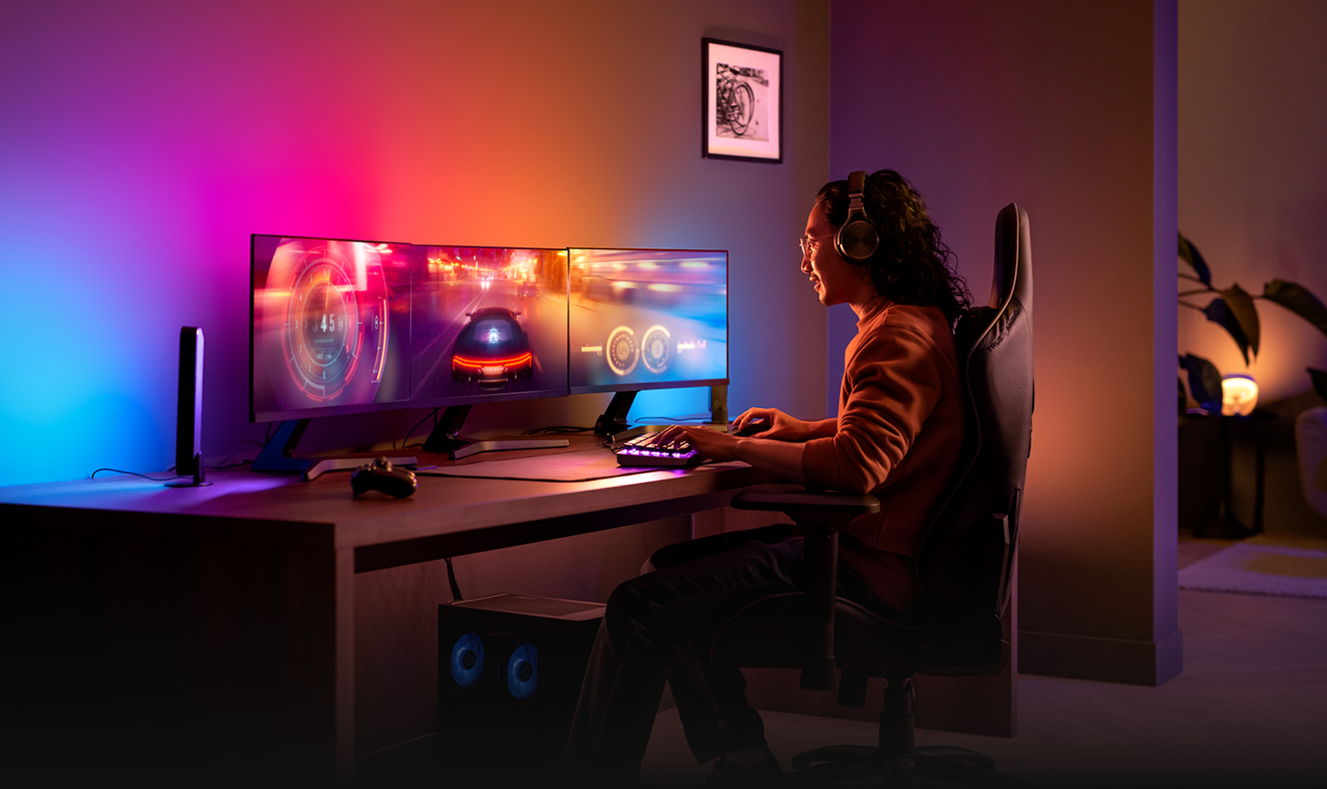 С помощью настольного приложения Hue Sync вы можете синхронизировать градиентную светодиодную ленту Play PC с содержимым на экране¹