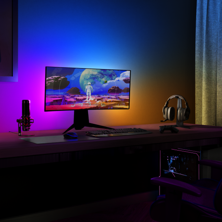 Светодиодная лента Play Gradient PC доступна в трех размерах для конфигураций с одним и тремя мониторами. В комплект входят монтажные зажимы, которые облегчают крепление ленты к задней части монитора.