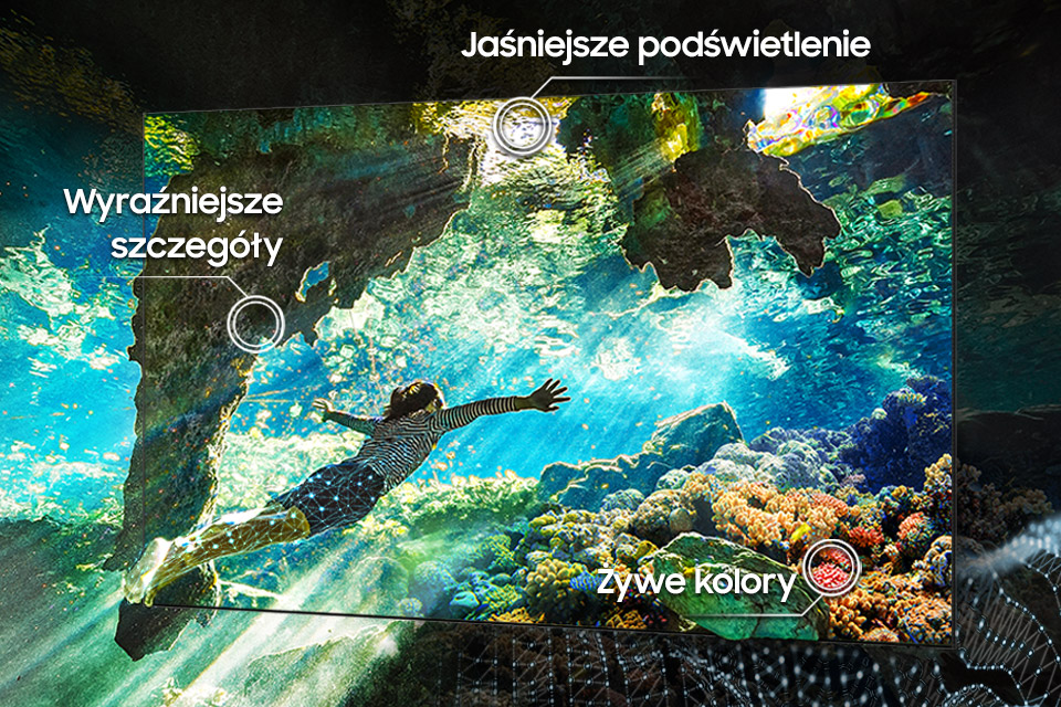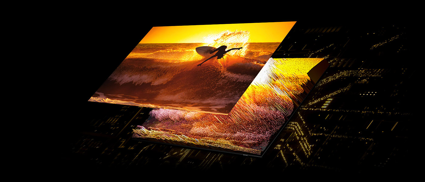 Відчуйте ще більше з мультиінтелектуальним процесором Samsung. Покращений процес масштабування з якістю, близькою до 4K, базується на 20 мультимодельних нейронних мережах, які аналізують дані зображення. Кожна мережа відповідає за певну територію та автоматично вибирається за алгоритмом для підвищення якості наданого контенту. Інтелектуальний алгоритм використовує процес детального навчання для аналізу зображення та вхідного вмісту, а потім покращує якість кожної сцени, покращуючи її контрастність і кольори, щоб ви могли відчути всю потужність зображення, схожого на 4K.