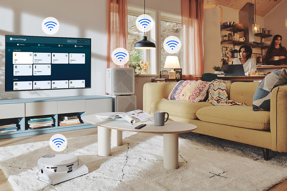 Використовуйте SmartThings і керуйте всіма своїми пристроями за допомогою дистанційного керування під час перегляду телевізора. Завдяки цій функції телевізор автоматично виявляє та підключається до різноманітних пристроїв поблизу – як розумних, мобільних та інтернет-, так і старшого покоління. Тепер, завдяки вбудованому SmartThings Hub, ви можете підключати сумісні продукти без додаткових пристроїв.**