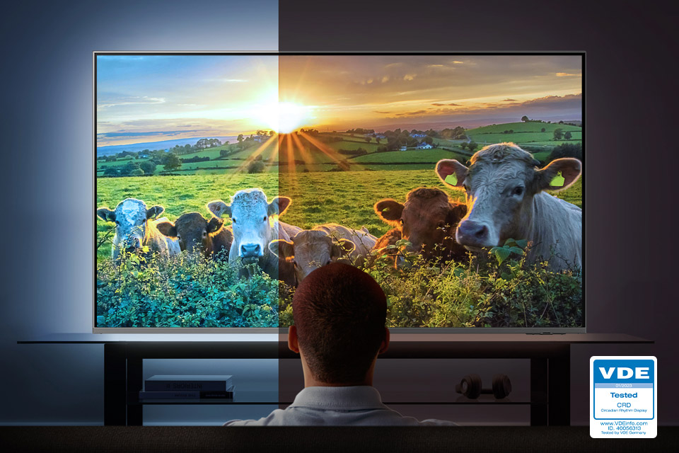 Функція, яка дозволяє автоматично регулювати яскравість зображення та колірну температуру залежно від часу доби та інтенсивності природного зовнішнього освітлення. Це робить зображення м’якшим і зручнішим для людських очей, тому вони менше втомлюються**.
