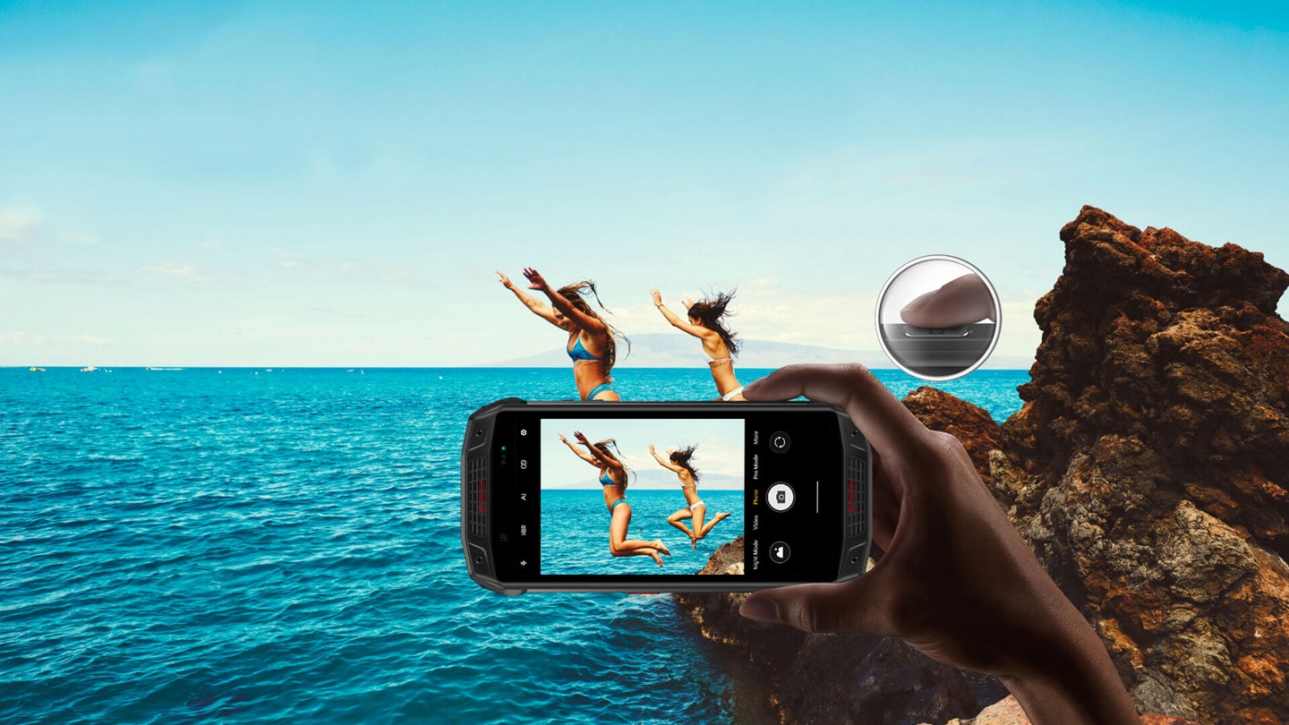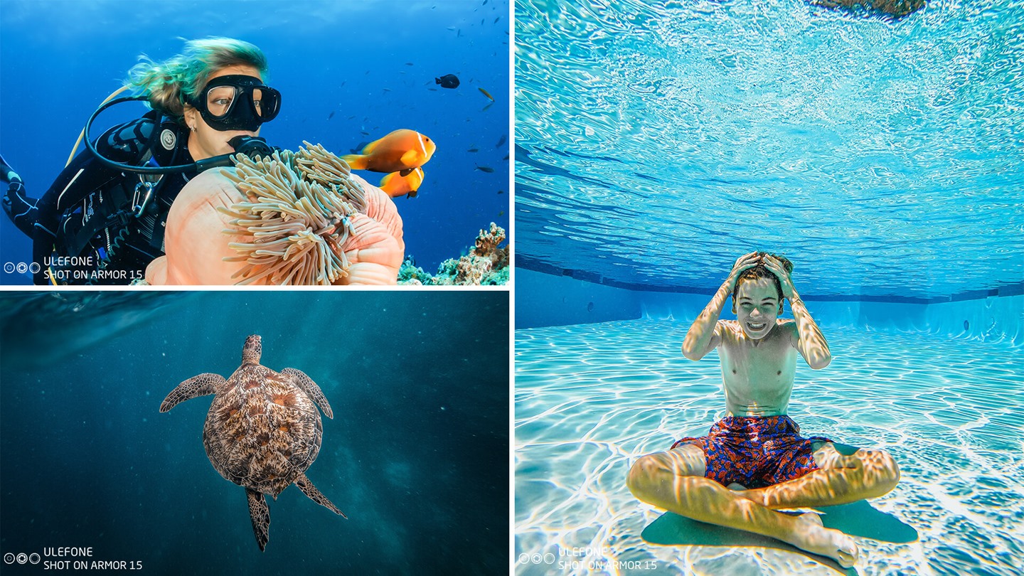 Armor 15 має чудову водонепроникність, тому ви можете безпечно плавати з ним. Робіть чудові підводні фотографії за допомогою механічної кнопки камери.