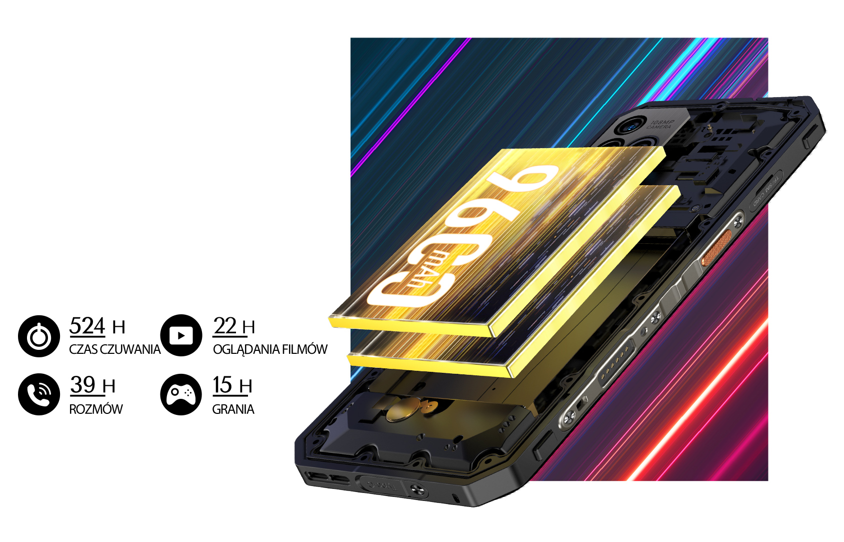 Потужна батарея ємністю 9600 мАг подовжує роботу телефону, і ви можете використовувати його до чотирьох днів на одній зарядці. Ніколи більше не напружуйтеся через низький заряд акумулятора.