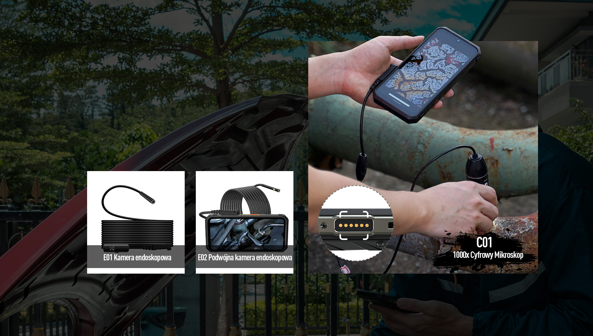 З’єднувач uSmart забезпечує легкий доступ до професійних аксесуарів, таких як ендоскоп або мікроскоп. Завдяки простому встановленню ваш Power Armor 19T може перетворитися на професійний пристрій, який підтримує вашу роботу.
