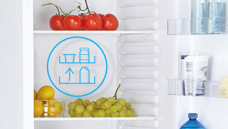 Відтепер ви можете легко та швидко оформляти інтер’єр свого холодильника та не турбуватися про високий посуд. Регульована висота полиць вирішить усі ваші поточні проблеми із зберіганням продуктів, це комфорт і гнучкість щодня.