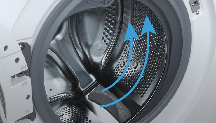 Технологія Active Motion System використовує комбінацію різних рухів барабана пральної машини, таких як обертання, пульсація або плавність, у поєднанні з різними швидкостями обертання. Завдяки цьому забезпечується краще змішування тканин, розподіл миючого засобу та більш ефективне видалення навіть складних плям і бруду.