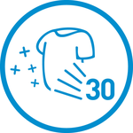 Повний набір циклів прання при низькій температурі для прання найпопулярніших тканин за 100 хвилин або менше: 1. Бавовна 30° 2. Синтетика 30° 3. Кольоровий 30° 4. Лагідний 30° 5. Швидко 30' Посилені рухи барабана компенсують перепад температури і допомагають досягти такої ж ефективності прання, як і при пранні при 40°. Змішані та кольорові тканини можна прати.