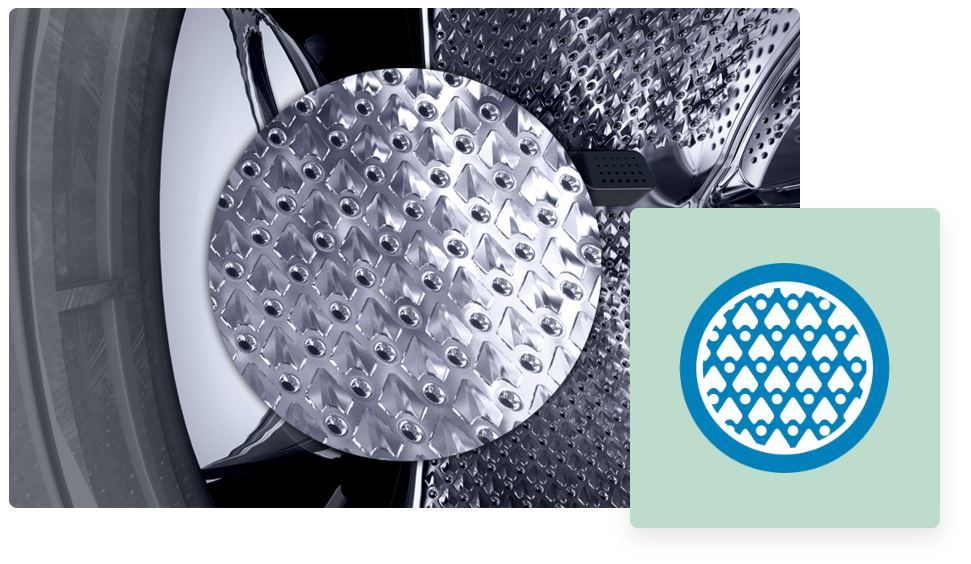 Технологія SteamCure™ використовує пару під час прання для ще кращих результатів. Пара, додана на початку циклу, допомагає видалити найскладніші забруднення, а застосування в кінці зменшує складки. Висока температура пари дозволяє назавжди та ефективно видалити всі плями без необхідності використання додаткових миючих засобів.