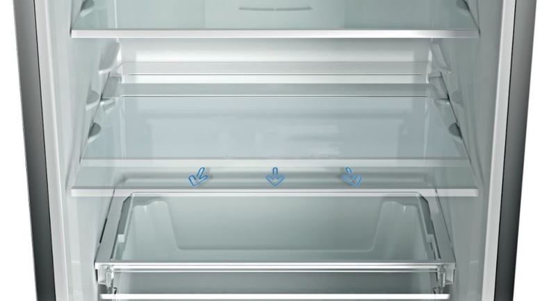 Спеціально розроблена полиця, яку можна висунути. Скляні полиці оснащені системою фіксації, яка запобігає випаданню їжі. Це безпечне та практичне рішення, яке забезпечує легкий доступ до всіх предметів, що зберігаються в холодильнику, навіть до тих, що знаходяться в найбільш важкодоступних куточках.