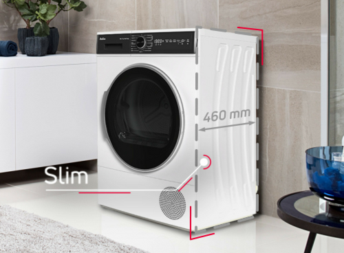 Сушильна машина ідеально підходить для маленької ванної кімнати. Конструкція барабана дозволяє здійснювати велике завантаження при малій глибині сушарки.