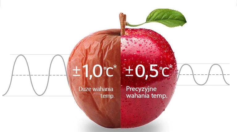 *На основі результатів тестування UL із використанням внутрішнього методу LG для вимірювання середніх пікових температур у відділенні для свіжих продуктів; протестовані моделі LGE: холодильник GBB72NSDFN з нижньою морозильною камерою (±0,5 ℃), холодильник GF-L570PL French Door (±0,5 ℃), холодильник J811NS35 Side by Side (±0,5 ℃), холодильник із верхньою морозильною камерою B607S (±0,5 ℃) і холодильник/ Верхня морозильна камера B606S (±1,0 ℃).* Без завантаження та з нормальною температурою. Результати можуть відрізнятися залежно від фактичного використання.