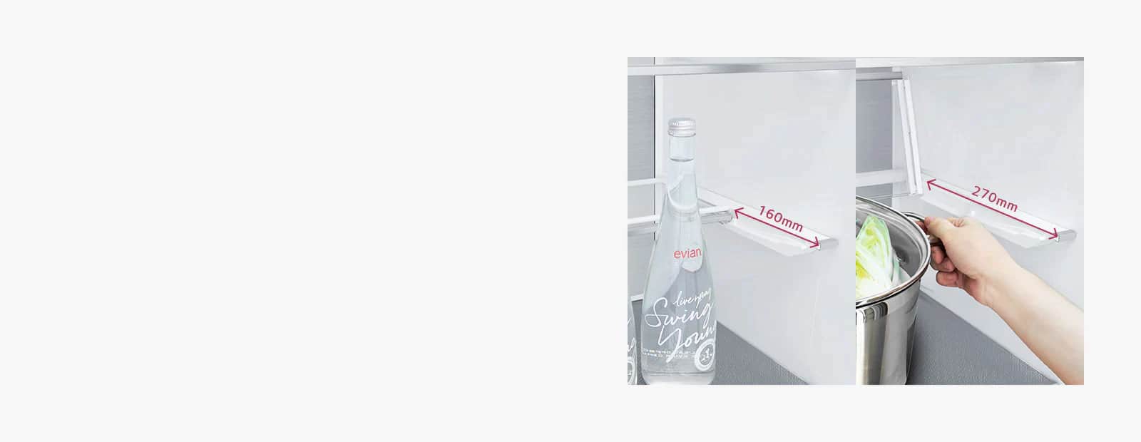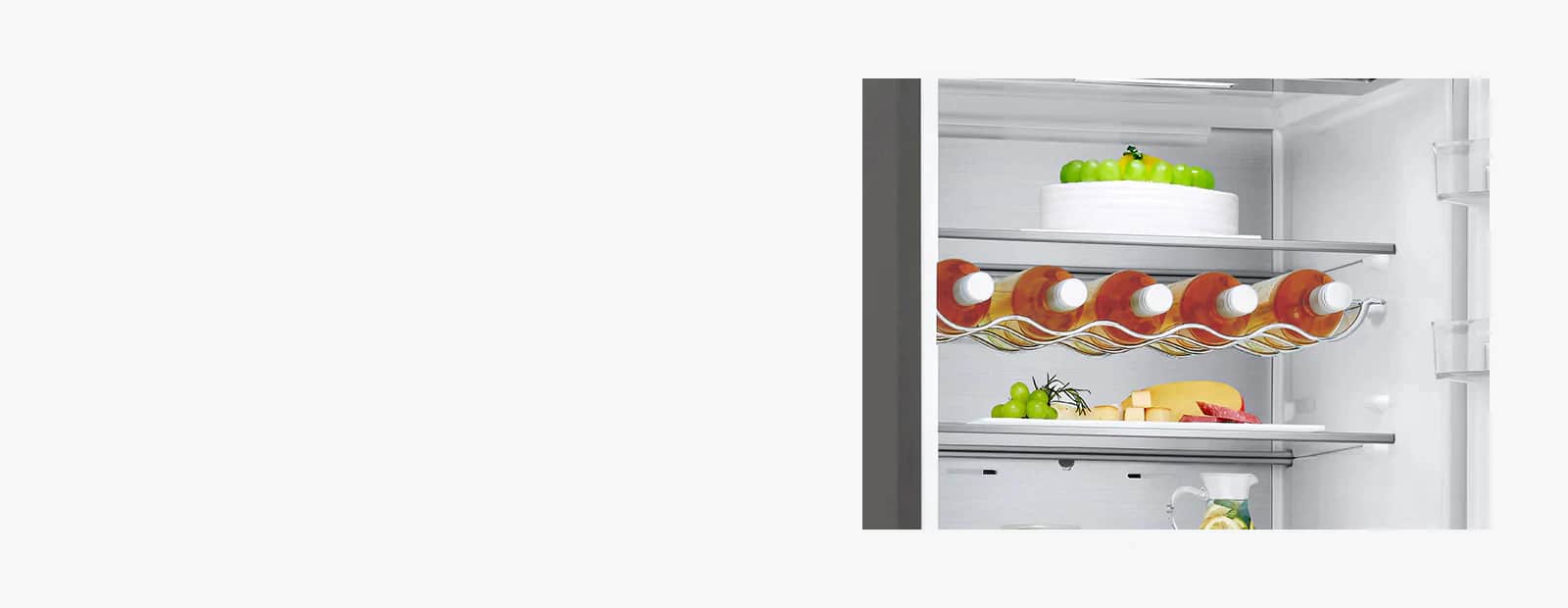 *На основі результатів випробувань UL із використанням внутрішнього методу випробувань LG порівняння часу, необхідного для зниження температури у верхньому дверному кошику з 24,8 ℃ до 8 ℃; протестовані моделі LGE: Non-DoorCooling+ (GBB60NSZHE) і DoorCooling+ (GBB72NSDFN).