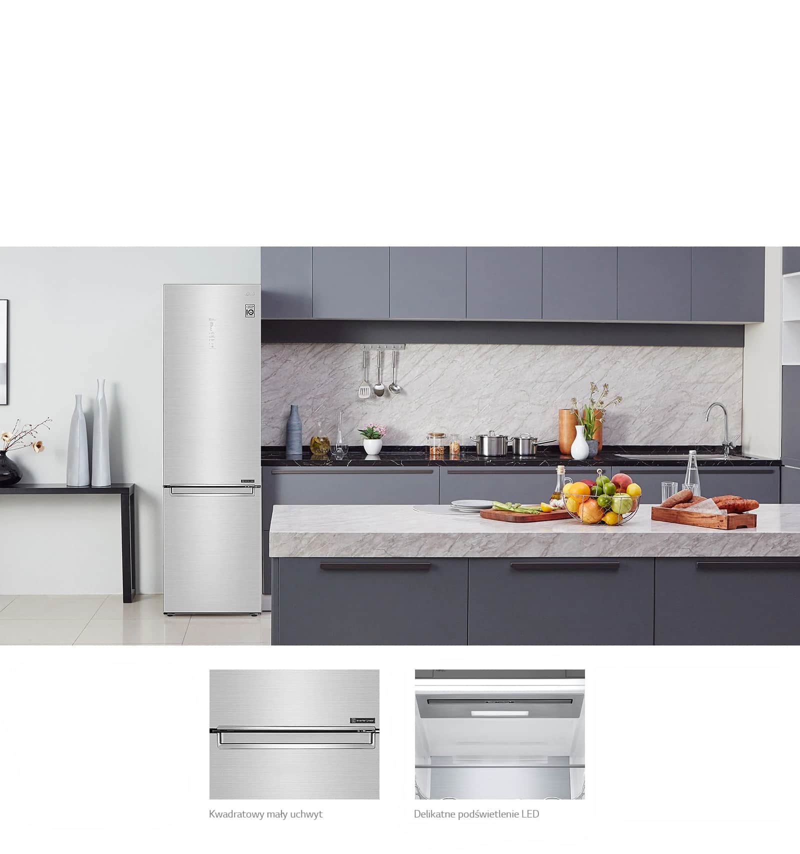 Інверторний лінійний компресор LG допомагає продуктам довше зберігати вигляд і смак свіжими, зменшуючи температурні коливання.
