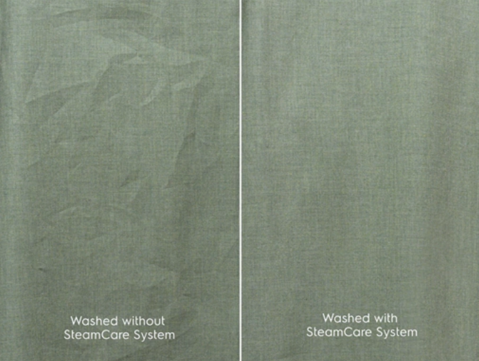 Завдяки системі SteamCare одяг, витягнутий із барабана, не м’ється. Завдяки додаванню пари в кінці прання волокна розслабляються, зменшуючи кількість складок на 1/3. Одяг, який не піддається високим температурам регулярного прасування, довше зберігає ідеальний вигляд.
