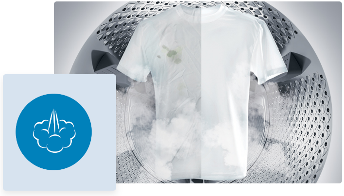 Технологія SteamCure™ використовує пару під час прання для ще кращих результатів. Пара, що додається на початку циклу, допомагає видалити найскладніші забруднення, а застосування в кінці зменшує складки. Висока температура пари дозволяє назавжди та ефективно видалити всі плями без необхідності використання додаткових миючих засобів.