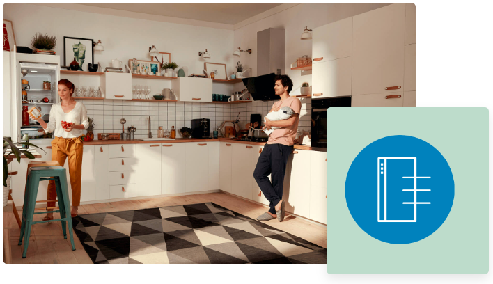 На деяких кухнях прилади розміщені в незвичних місцях. Дверцята SmoothFit™ відкриваються врівень під кутом 90 градусів, що означає, що холодильник можна легко поставити в кутку кімнати або прямо біля стіни - без шкоди для зручності використання. Ящики також повністю висуваються!