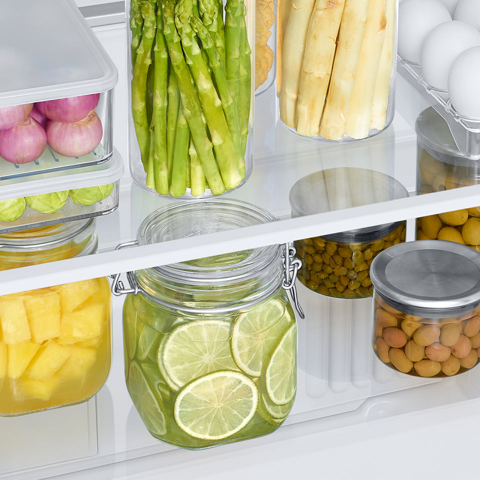 Різноманітні варіанти компонування виробів перетворять щоденні клопоти на задоволення. Полиці нового дизайну можна вільно розташувати та адаптувати до ваших поточних потреб. Завдяки цьому в холодильник можна помістити всі необхідні речі, навіть більших розмірів і нестандартної форми.