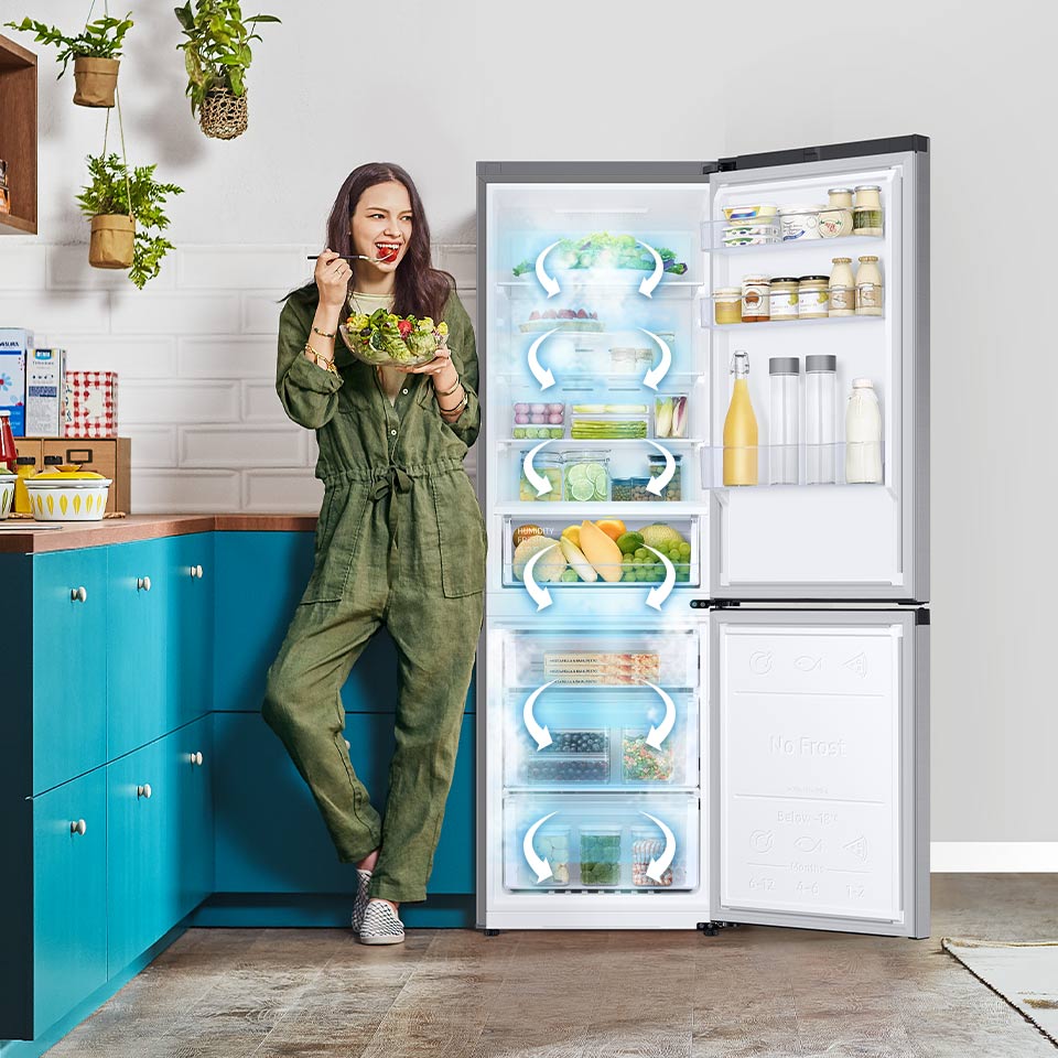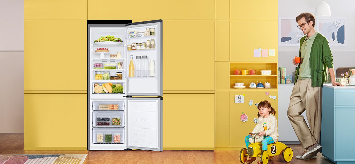 Холодильники Samsung створені для зменшення споживання електроенергії. Цьому сприяють як сучасні технології, так і практичні функції. Сигналізація відкритих дверей нагадує вам закрити пристрій, щоб запобігти проникненню непотрібного теплого повітря всередину. Функція Holiday дозволяє зменшити споживання електроенергії під час відпустки, а світлодіодні лампочки добре освітлюють інтер’єр і є економічнішими за традиційні лампочки.