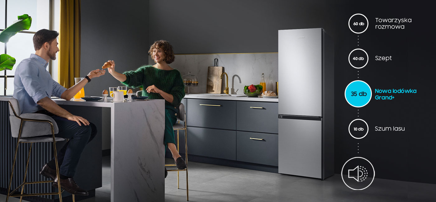 Насолоджуйтеся спокоєм і тишею на кухні. Насолоджуйтесь улюбленими стравами та спілкуйтеся без зайвого шуму. Сучасні технології зменшують звуки та вібрацію, тому ви можете використовувати один із найтихіших холодильників на ринку - його рівень шуму досягає лише 35 дБ⁷.