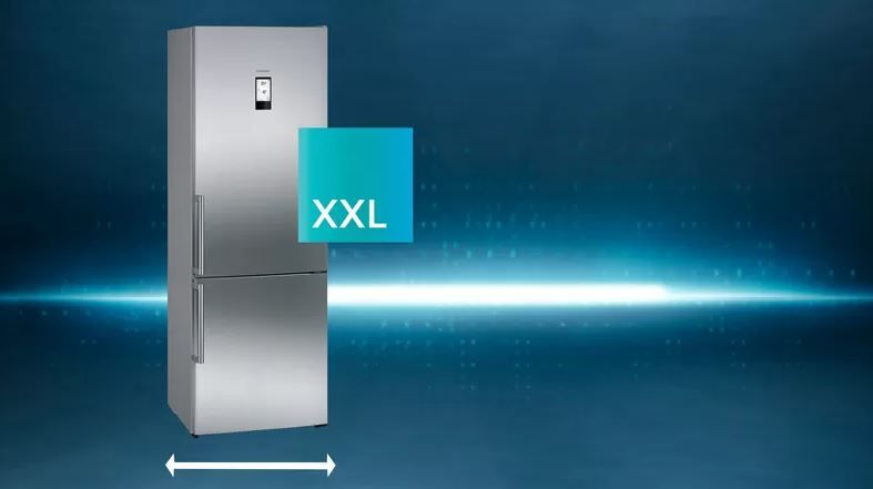 Холодильник XXL надзвичайно великої місткості bigCapacityXXL холодильник bigCapacity: надзвичайно місткий холодильник із морозильником шириною 70 см від Siemens є ідеальним рішенням для тих, кому потрібно багато місця для великих щотижневих покупок. Більший внутрішній простір полегшує розміщення продуктів і забезпечує максимальну гнучкість. Крім того, холодильники та морозильні камери Siemens bigCapacity можна розміщувати в нішах або прямо біля стін.