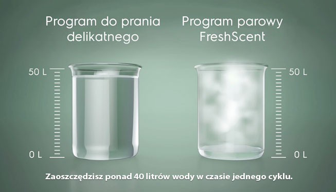Повний цикл прання часто зовсім непотрібний, особливо коли ви хочете лише швидко оновити одяг. Використовуючи пару, ви економите воду, подовжуючи термін служби свого одягу та планети. Додатковою перевагою є те, що парове освіження зменшує складки, скорочуючи час прасування.