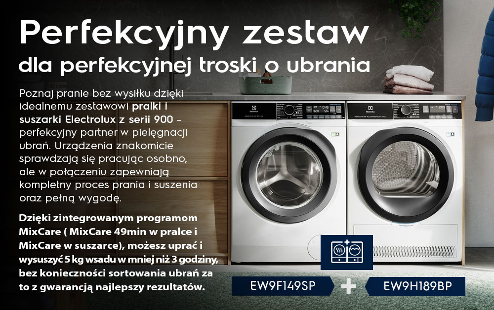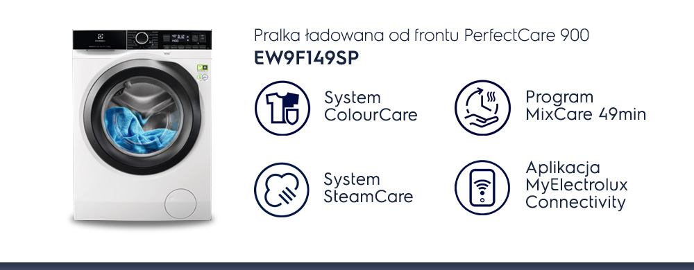 Програма MixCare 49 хв. ефективне прання змішаного завантаження при 30ºC. У поєднанні з сушаркою серії 900 повний процес - прання та сушіння - займає менше 3 годин. Ідеальний баланс між доглядом за одягом і продуктивністю з меншим впливом на навколишнє середовище завдяки пранню при низькій температурі.