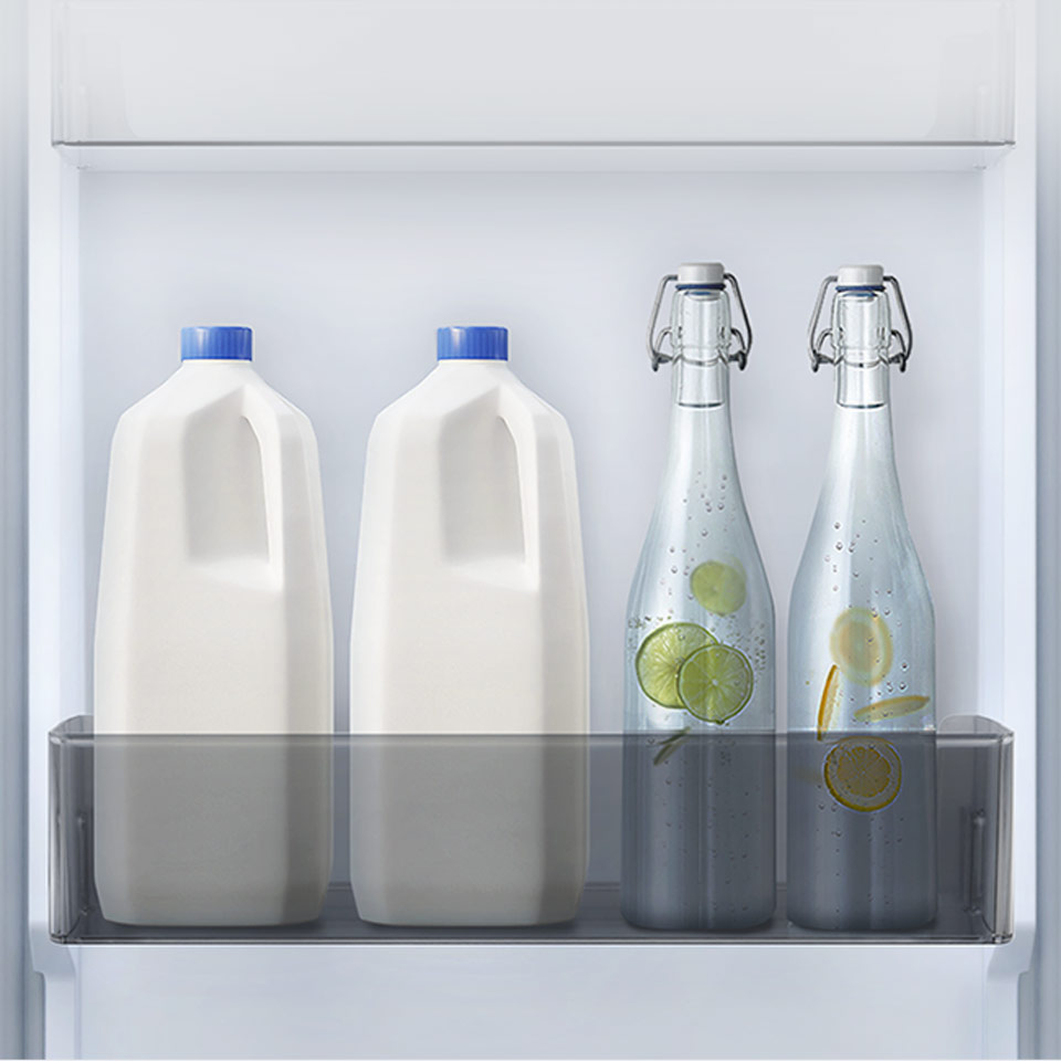 Дверцята холодильника мають 4 глибокі контейнери, в які можна помістити консерви, пляшки та коробки з напоями. Ви заощадите місце на основних полицях.