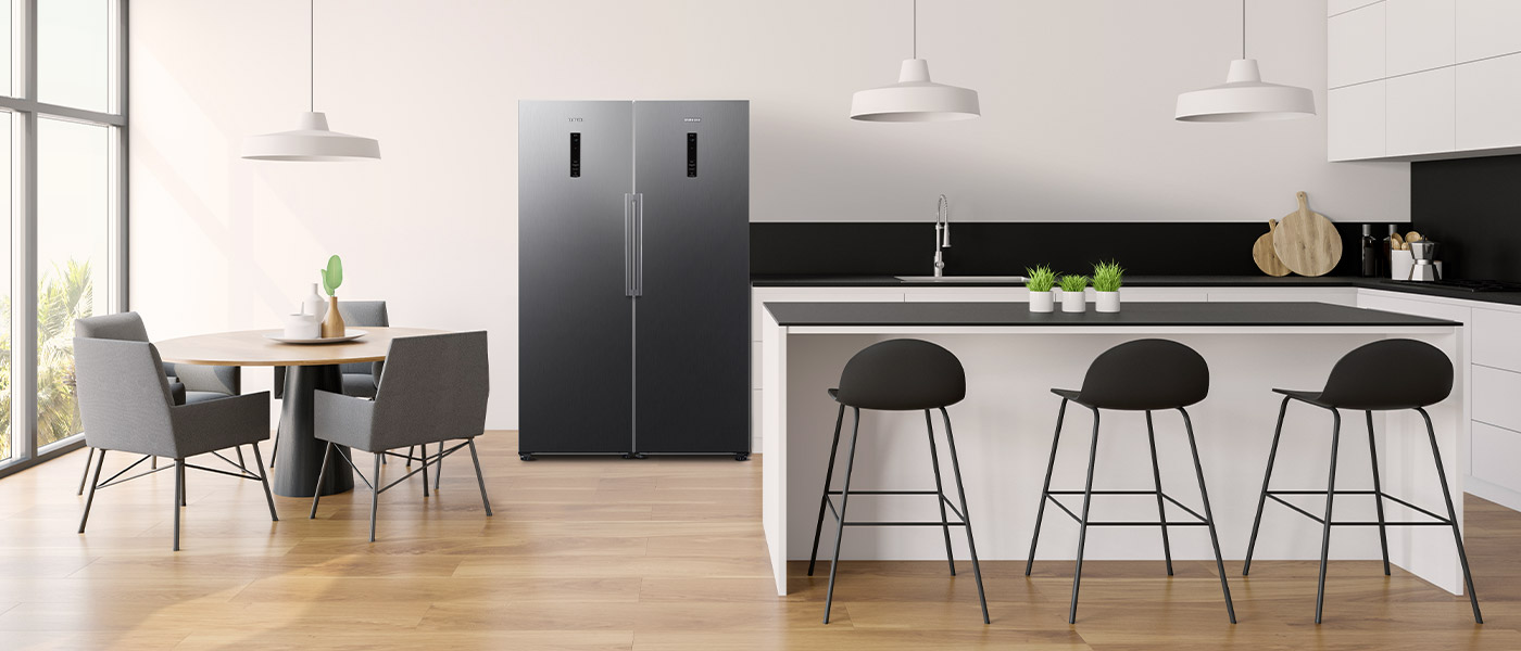 Незалежно від планування вашої кухні, ви завжди можете зручно використовувати морозильну камеру. Налаштуйте напрямок відкривання дверцят пристрою відповідно до ваших потреб.