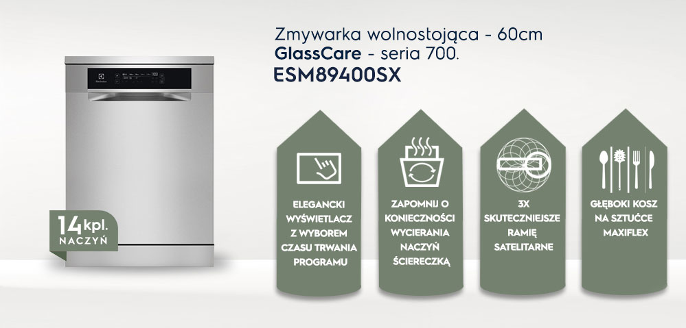 У посудомийній машині використовується новий тип плоского надзвичайно елегантного сенсорного дисплея. Панель також надзвичайно інтуїтивно зрозуміла, вибір програм зводиться лише до вибору тривалості програми, a Решта параметрів посудомийна машина вибирає сама. Дверцята холодильника мають велику ергономічну ручку для відкривання.