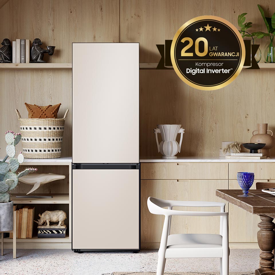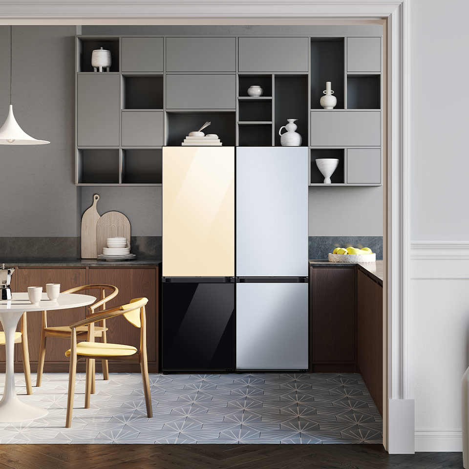 Шукаєте унікальний холодильник, який буде повністю відповідати стилю вашої кухні? Спробуйте модель RB34C7B5CAP, яка продається без дверних панелей. Ви можете підібрати їх ідеально, вибираючи з широкого асортименту кольорів і фактур. Важливо те, що якщо ви коли-небудь захочете змінити стиль своєї кухні, ви можете зробити це, не купуючи новий прилад - достатньо лише встановити панель іншого відтінку або фактури. Холодильник Bespoke поєднує в собі довговічність і функціональність, і в той же час може розвиватися разом з вами і стилем вашого будинку. Насолоджуйтеся індивідуальним рішенням серії Bespoke.