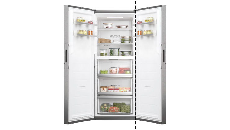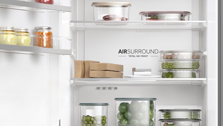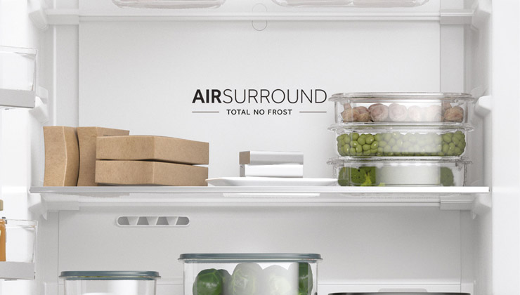 Технологія Air Sorround — це система горизонтального потоку повітря, у якій на кожній полиці розташовані сопла для холодного повітря. Це допомагає підтримувати ідеальну температуру в морозильній камері та гарантує, що збережені продукти залишаться свіжими довше. Ось чому Haier Air Surround зберігає смак, текстуру та соковитість їжі до 99%*, гарантуючи, що вона збереже той самий смак і структуру, що й у перший день. *тест, проведений незалежною зовнішньою технічною лабораторією, порівнюючи AIR SURROUND з технологією DIRECT FLOW (моделі Haier Group: CFE735CSJ і CVBN6184WBF / S1).