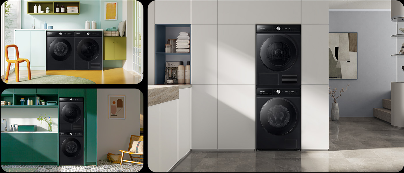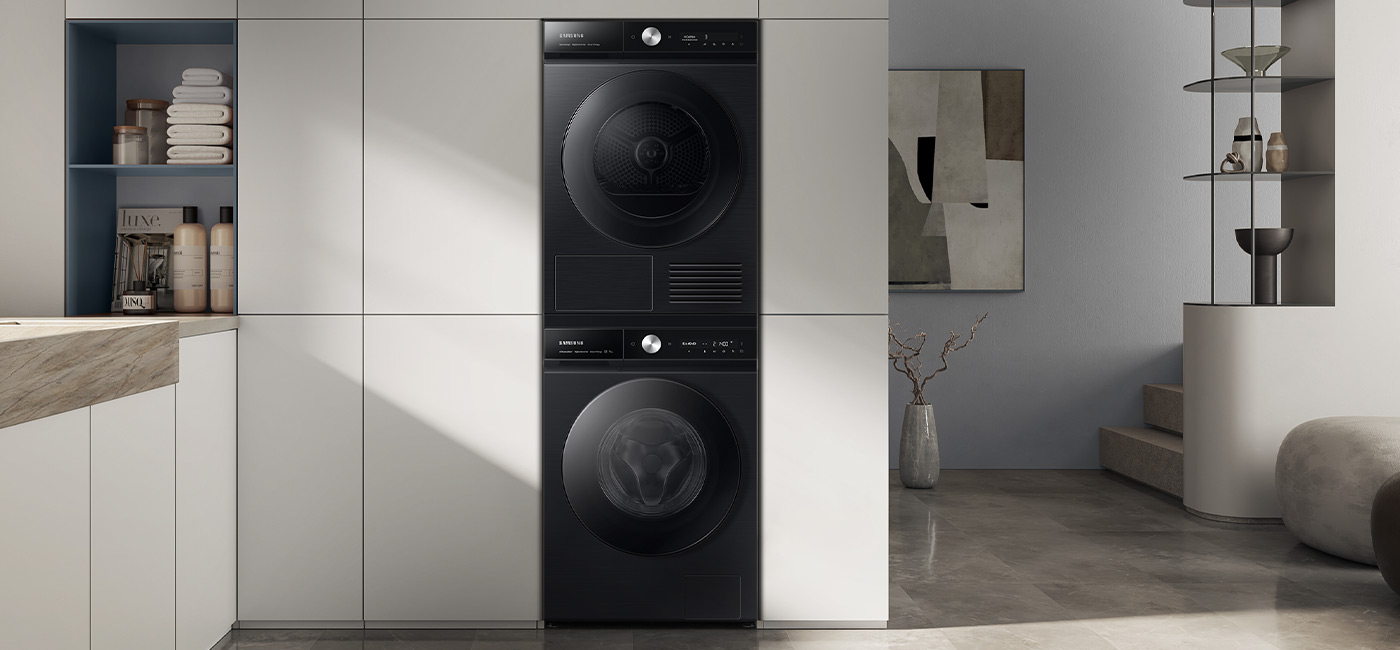 Плоска передня частина сушарки виглядає надзвичайно ефектно і легко впишеться в декор будь-якого інтер'єру. Коли ви обираєте пральну машину та сушильну машину з лінійки Bespoke, ви можете розмістити їх одна на одній або поруч. Виберіть найкращий для вас варіант.