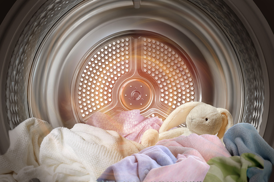 Позбудьтеся бактерій, кліщів і алергенів з одягу, подушок і плюшевих іграшок. Програма Hygiene використовує гаряче повітря для дезінфекції як сухого, так і вологого завантажень¹⁷, знищуючи до 99% мікробів¹⁸ і зберігаючи повну ефективність сушіння.