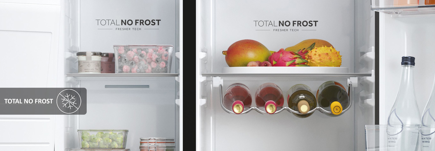 Сучасна технологія Total No Frost запобігає утворенню інею у всій холодильній камері та змішуванню запахів продуктів, що зберігаються. Спеціальна кришка запобігає проникненню теплого повітря в холодильник під час безперервного процесу розморожування, захищаючи їжу та запобігаючи втратам енергії.