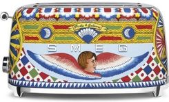 Тостери Smeg були розроблені з увагою до найменших деталей. Корпус з міцної пофарбованої сталі. Хромована стійка основа. Хромована ручка регулювання потужності нагрівача. Ергономічний важіль активації циклу. Широкі кишені, в які помістяться не тільки скибочки, а й розрізані навпіл рулети. Все це витримано в унікальному стилі 1950-х років