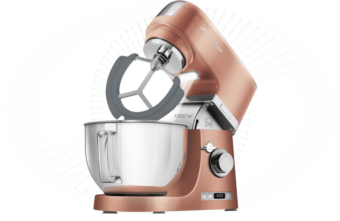 Маючи на своїй кухні робота SENCOR STM 7876GD,_x000D_ ви зможете легко замісити або замісити потрібне вам на даний момент тісто_x000D_ якщо хтось із родини хоче. Металеві шестерні знижують ризик заїдання_x000D_ і корупція режимів. Завдяки високій потужності він справляється з найгустішими видами тіста._x000D_ Він не боїться ні густоти, ні кількості, ні консистенції, тому_x000D_ 3 насадки: А-подібний міксер, гак для тіста_x000D_ дріжджове та важке тісто та віночок. Завдяки системі кріплення_x000D_ багнетні змішувальні ручки в мисках, вам буде гарантована легка робота. метал_x000D_ дизайн робить продукт стабільним і точним
